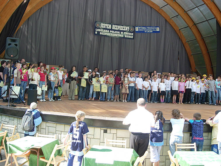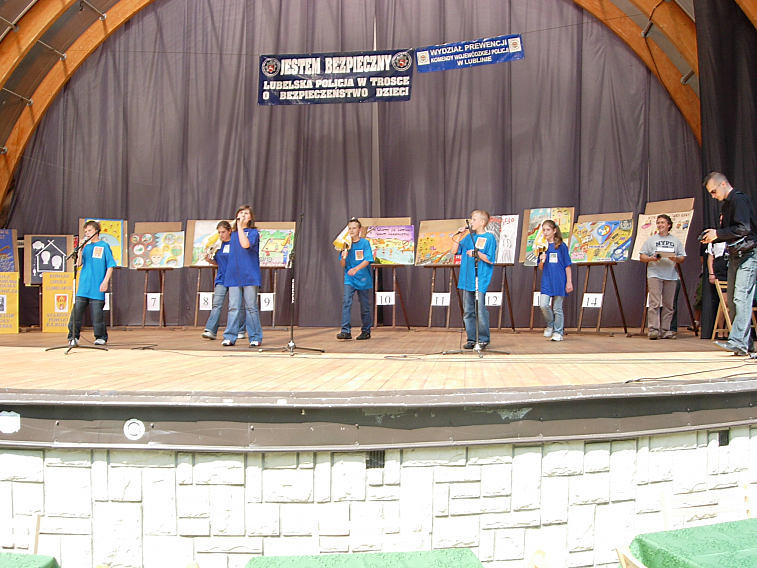 Poziom konkursu był bardzo wysoki. Wszyscy, czyli 15 drużyn - zwycięzców rozgrywek powiatowych, chcieli zaprezentować się z jak najlepszej strony. Za kulisami dawało się odczuć ogromne napięcie, udzielające się uczniom i ich nauczycielom. Nie mniej gorąca atmosfera panowała na widowni, która głośnymi okrzykami, śpiewem i żywiołowymi podskokami dodawała otuchy swoim zawodnikom. Do wspólnej zabawy zachęcały również policyjne maskotki: sierżant Poli i sierżant Alicja z Lublina oraz sierżant Leon z Puław.
