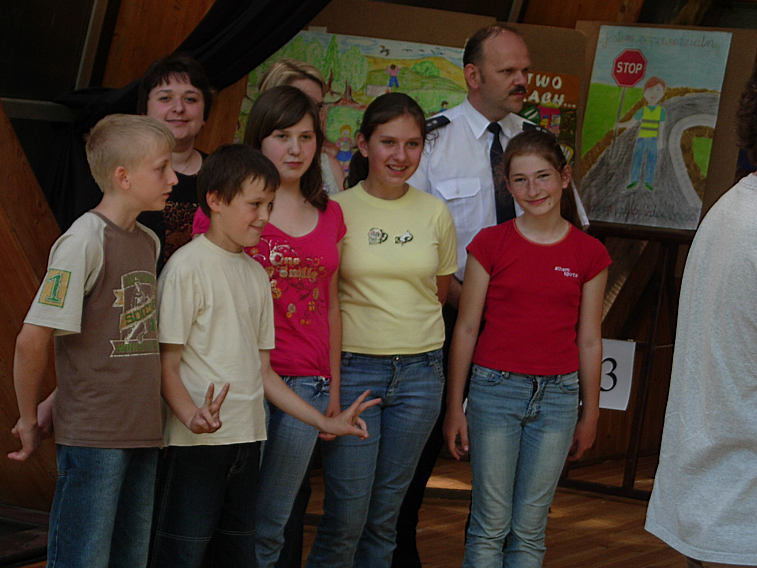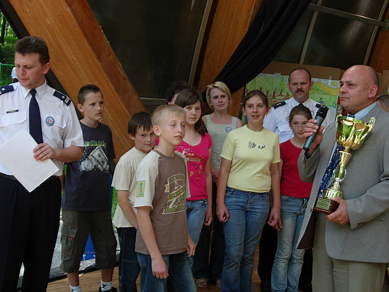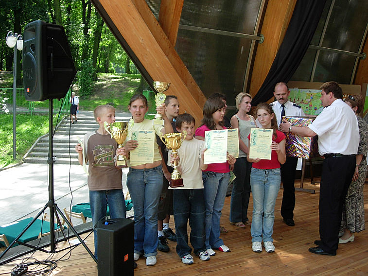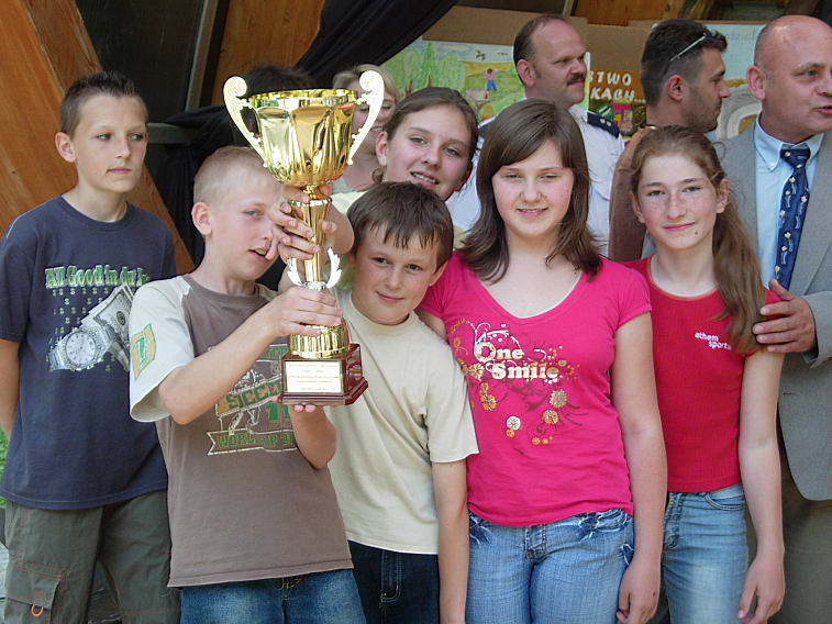 6 czerwca 2007 r. wszyscy mocno trzymaliśmy kciuki za Mateusza Włodarczyka, Daniela Rękasa, Urszulę Szeląg, Gabriela Kopycińskiego, Weronikę Ciempiel i Kingę Pastuszek, którzy reprezentowali naszą szkołę, gminę i powiat w VII Wojewódzkim Konkursie Wiedzy Prewencyjnej "Jestem Bezpieczny". Naszą drużynę przygotowały Panie Maria Jagodzińska i Dorota Bis. Radą i pomocą służył nam również podkomisarz Dariusz Strzelczyk - specjalista ds. nieletnich Komendy Powiatowej Policji w Opolu Lubelskim.
